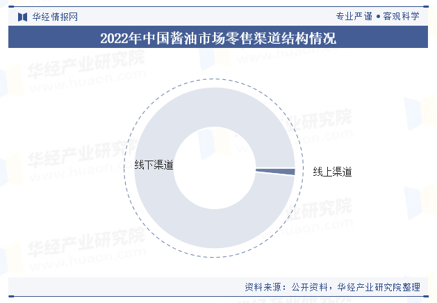 从渠道扶植来看,线上渗入率相对较低;目前的酱油厂商次要依赖保守的经销模式来打开市场,虽然疫情以来消费者的酱油采办加快向线上迁徙,线上集中采购渐成常态,但2022年的线下渠道零售额占比照旧维持正在98%以上。