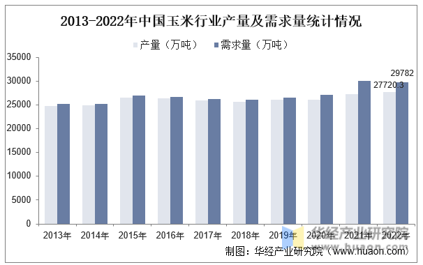 近年来国内玉米产量及需求量全体上呈现出增加态势,进口量不竭添加,但供给次要依赖国内出产。按照国度统计局及中国海关总署数据,2013至2022年,我国玉米产量自24845。3万吨增加至27720。3万吨,CAGR为1。22%;我国玉米需求量自25164万吨增加至29782万吨,CAGR为1。89%。
