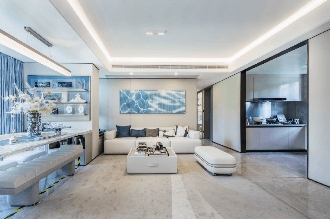 国贸虹桥璟上所正在,具有天然的黄金水系,环绕水资本构成的滨水河岸,加上代建公共绿地,给了这个项目标“总设想师”团队更多灵感。以岸为滩,以陆地为岛,以草木点缀,因地制宜,巧妙使用海洋中的夸姣元素,将现代的材料和表示手法予以沉构,项目带来的是舒缓的、生态的、健康又有活力的糊口场景,会是何等的罕见,若是要把这款产物放正在板块内来比方,他就是像是一个浪漫的科创理科生。而虹桥如许一个的区域恰好需要如许的产物。
