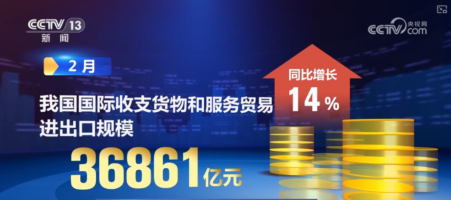 国度外汇办理局最新数据显示,2月,我国国际出入货色和办事商业进出口规模36861亿元,同比增加14%。2025年前两个月,国际出入货色和办事商业累计顺差8170亿元,我国外贸实现优良开局。