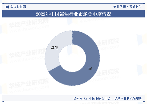 本文节选自华经财产研究院发布的《2023年中国酱油行业现状及趋向,终端消费布局不变,线上渗入率较低「图」》,可进入华经谍报网搜刮查看。2022年,我国酱油市场呈现一超多强的合作款式,CR3为67%,中小品牌面对较大的合作压力,优胜劣汰加快,海天味业做为酱油行业老牌龙头,市占率第一已持续数十载,存正在规模劣势及渠道劣势,正在市场中具有较大的话语权。受疫情以及原材料价钱上涨幅度较大等要素影响,我国部门酱油企业利润承压较着,运营能力差、抗风险能力低的小企业正在市场成长中逐渐被市场优化。