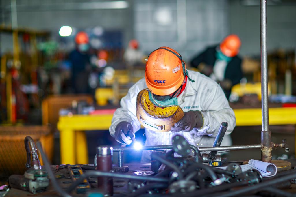 2024年12月21日,中船澄西扬州船舶无限公司工人正在功课。发(任飞 摄)。